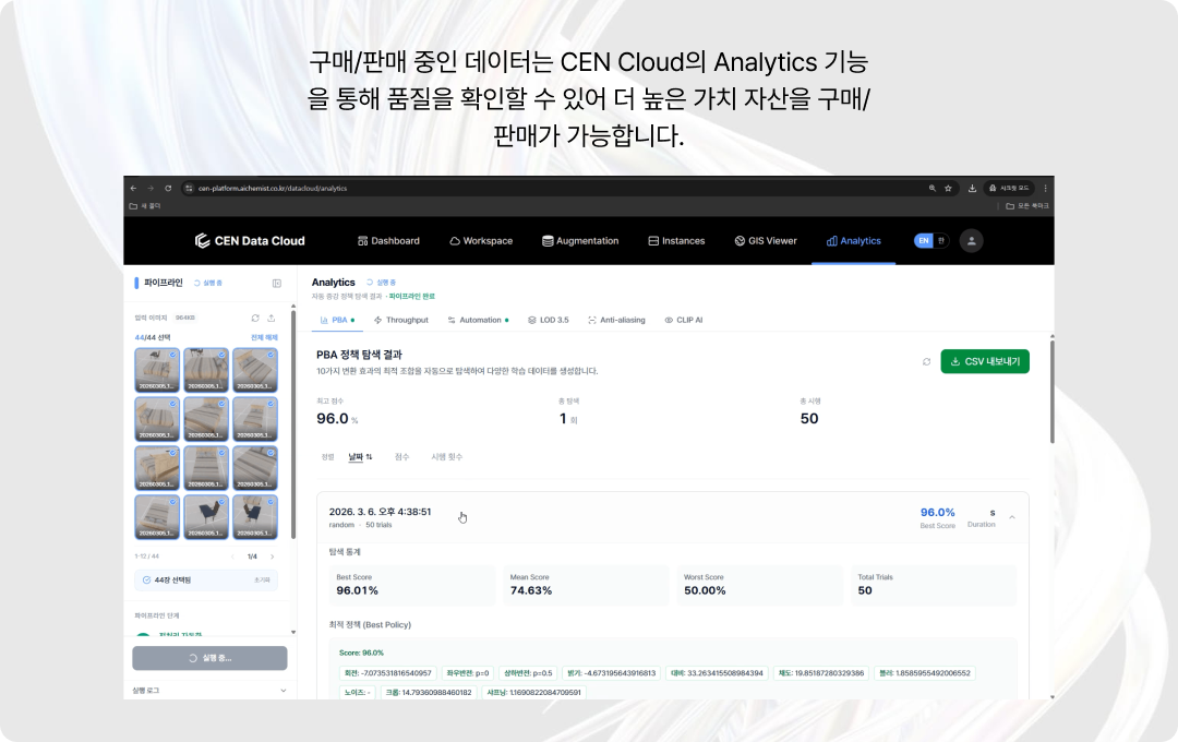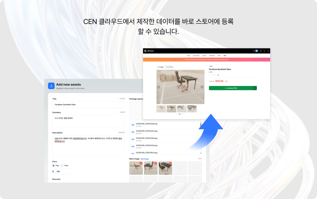 단순한 구매를 넘어, CEN 클라우드에서 생성하고 정제한 고품질 데이터를 공급하고 수익을 창출하세요.